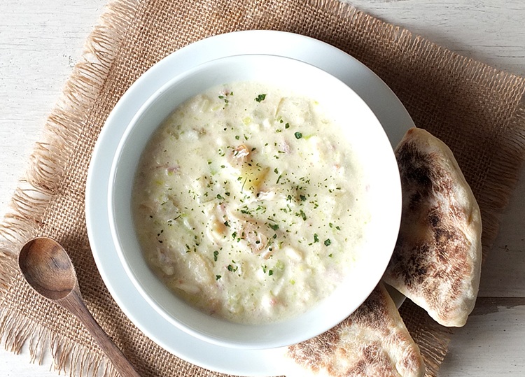 Classic Scottish soup with potatoes, lightly smoked fish and cream served with crusty seeded bread. Supă din Scoția cu cartofi si peste afumat. Servit cu pâine crocantă însămânțate. |